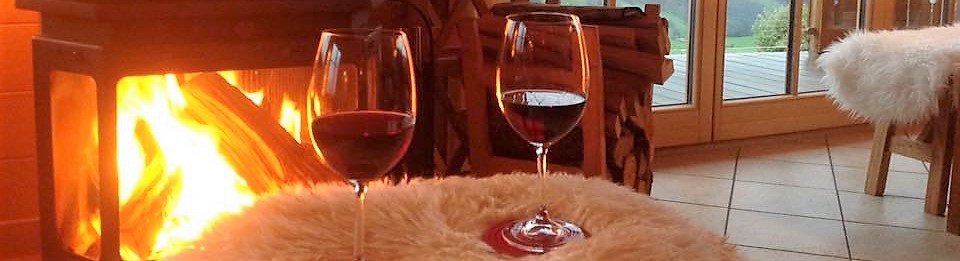 Zodra de zon achter de bergen is verdwenen koelt het zo snel af dat je naar binnen gaat. Daar is het nog aangenaam warm doordat de zon de hele dag op de grote ramen heeft geschenen. Je man steekt de houtkachel aan en samen genieten jullie van het schouwspel van rode luchten en de zich strak aftekenende bergketens.